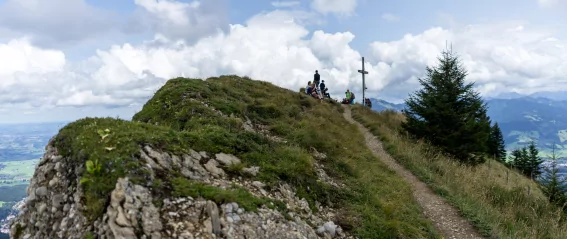 Oder genießen Sie die sehr schöne Rundwanderung von der Bergstation zum Naturfreundehaus (ges. ca. 3 Std.) Von der Bergstation Bärenfalle über die Alpe Starkatgund (ca. 25 Min.) zur Alpe Gschwenderberg (ca. 45 Min.), diese ist vielleicht die schönste bewirtete Hütte im Allgäu. Diese Berghütte aus der Mitte des 17. Jahrhunderts wurde im Originalzustand belassen und ist innen wie außen unbedingt sehenswert. Fantastisch ist der immer wieder schöne Ausblicke auf den unter uns liegenden Alpsee. Weiter gehts auf’s Gschwenderhorn zum Naturfreundehaus (ca. 75 Min.). Nach einer zünftigen Brotzeit machen wir uns auf den Rückweg, hier wandern wir direkt über die Starkatgund-Alpe zur Bergstation Bärenfalle (ca. 1 Std.).